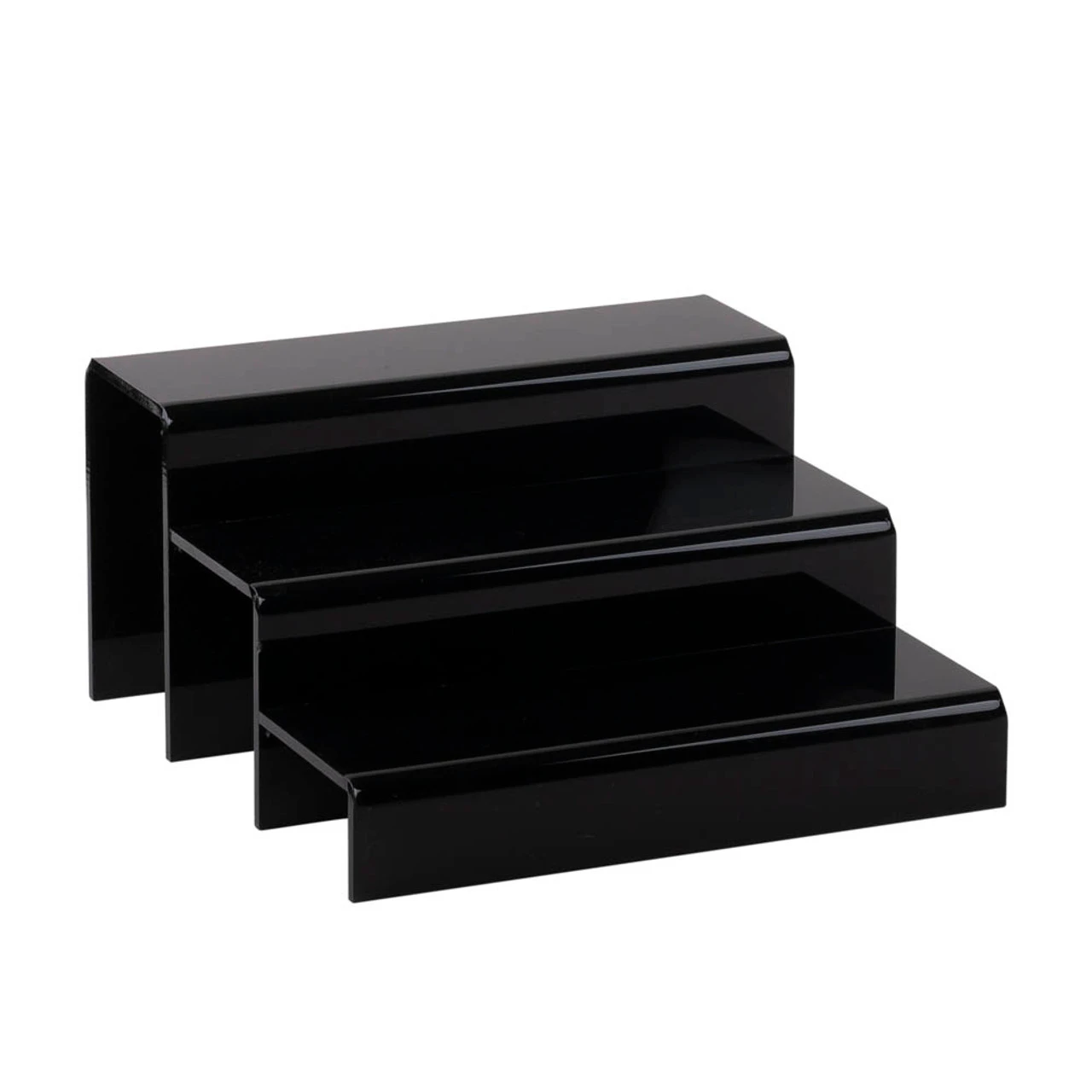 Bring some organization to your back bar with this 3 tiered liquor bottle display shelf. Made from durable black acrylic, these bar shelves will not bend or buckle, and are easy to clean. These shelves are exclusive to KegWorks and made in the USA.