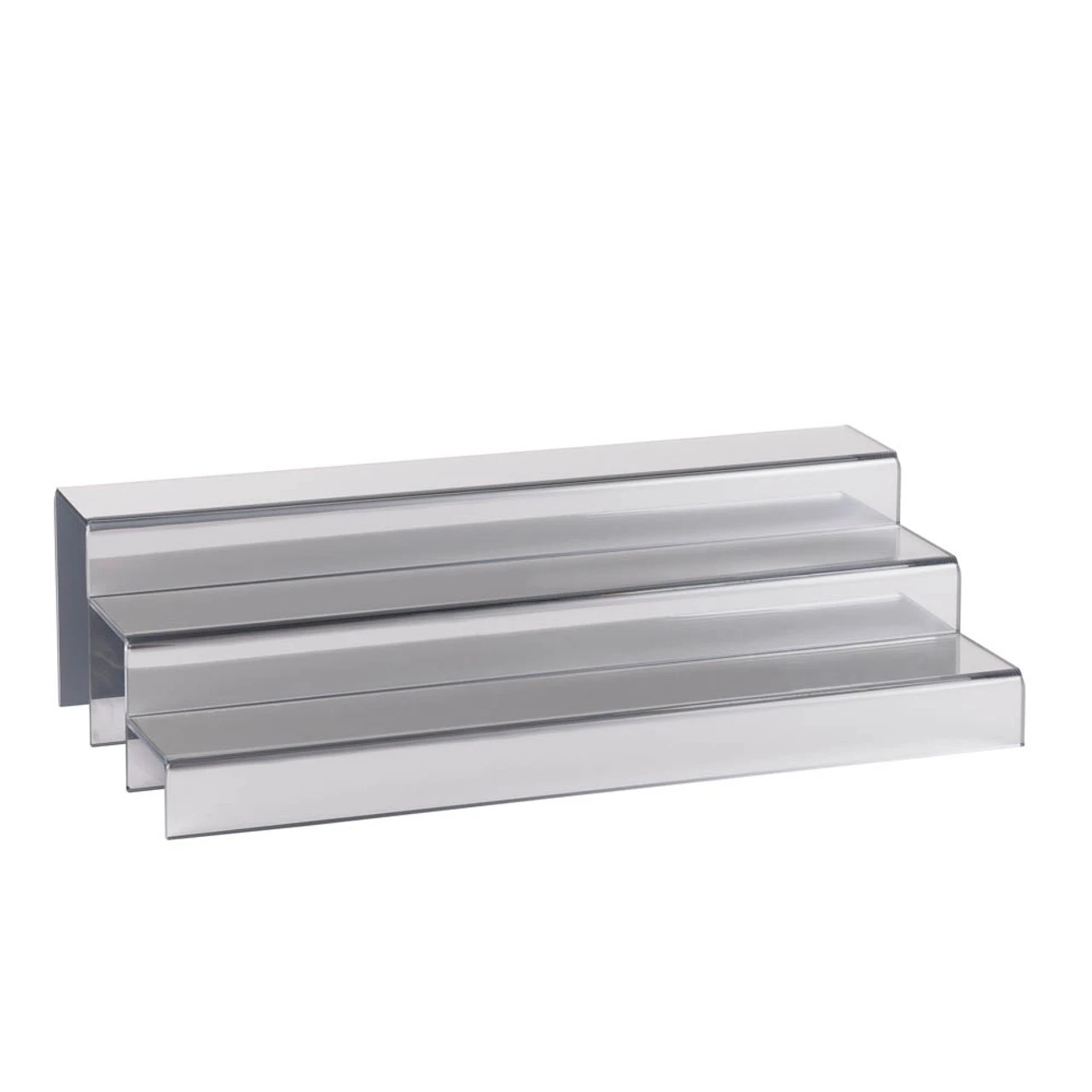Bring some organization to your back bar with this 3 tiered liquor bottle display shelf. Made from durable acrylic with a bonded mirror finish, these bar shelves will not bend or buckle, and are easy to clean. These shelves are exclusive to KegWorks and made in the USA.