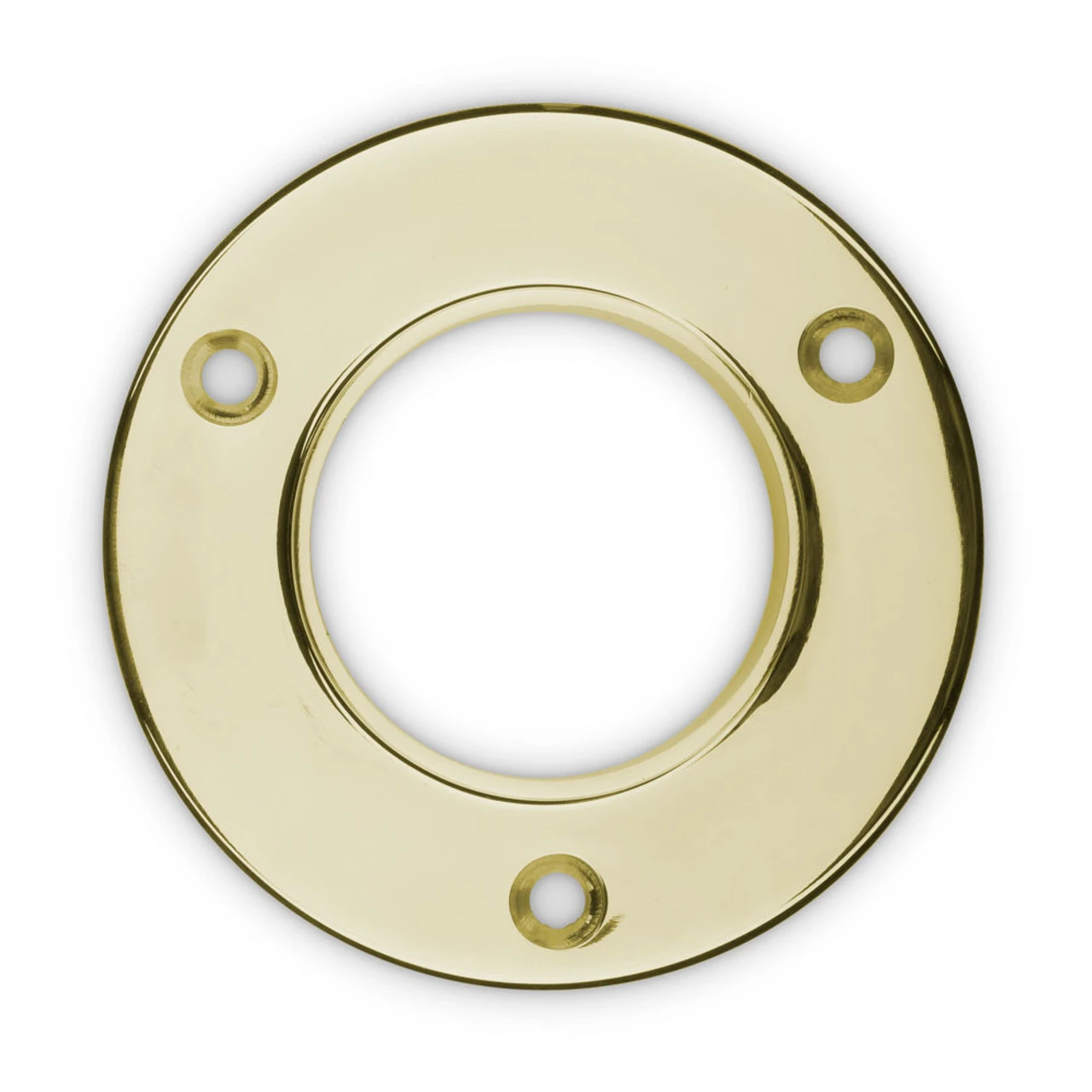 This wall flange is made of shiny Polished Brass and comes with the necessary mounting hardware to ensure easy installation on any surface: wall, floor, or ceiling.