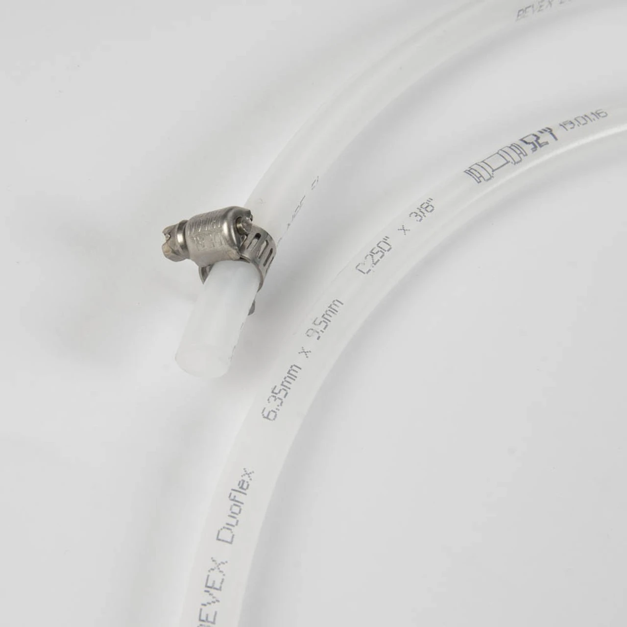 - 5’ of 3/16” inside diameter product line which attaches to screw clamp on other side
