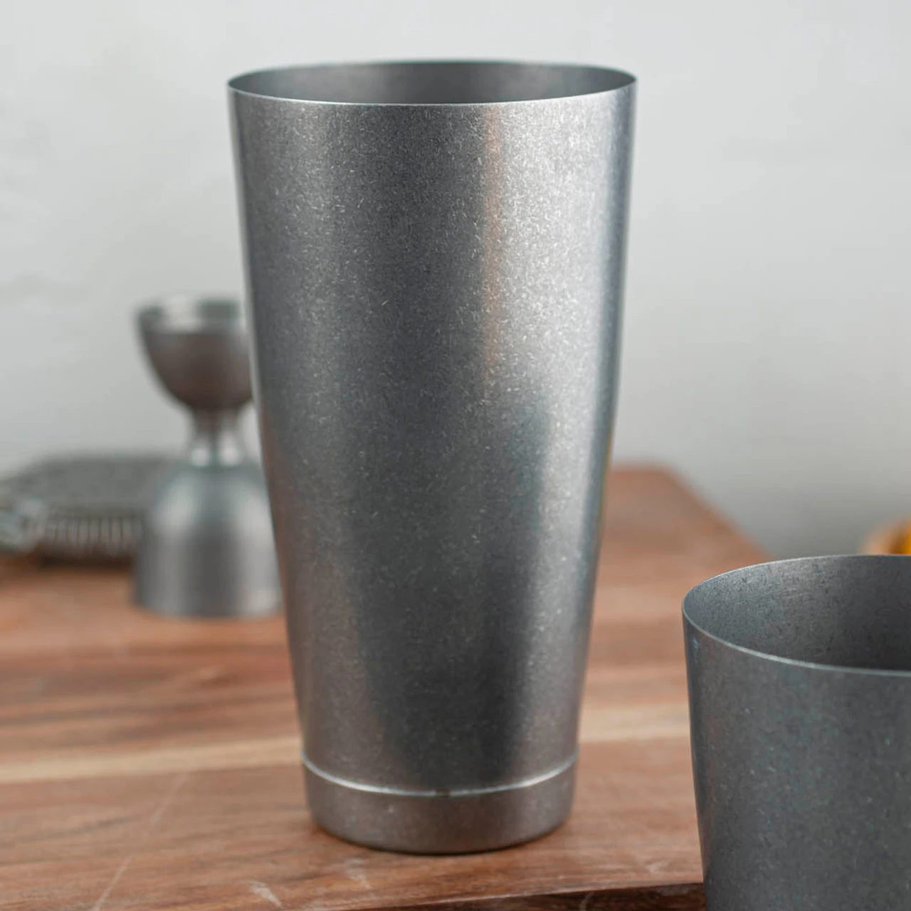 This tall shaker tin comes with a vintage stainless steel exterior finish for a look that is truly unique. It resembles galvanized steel or vintage steel tools but you won’t have to worry about these bad boys rusting. The interior has a satin finish to hide wear and to make it easier to separate.