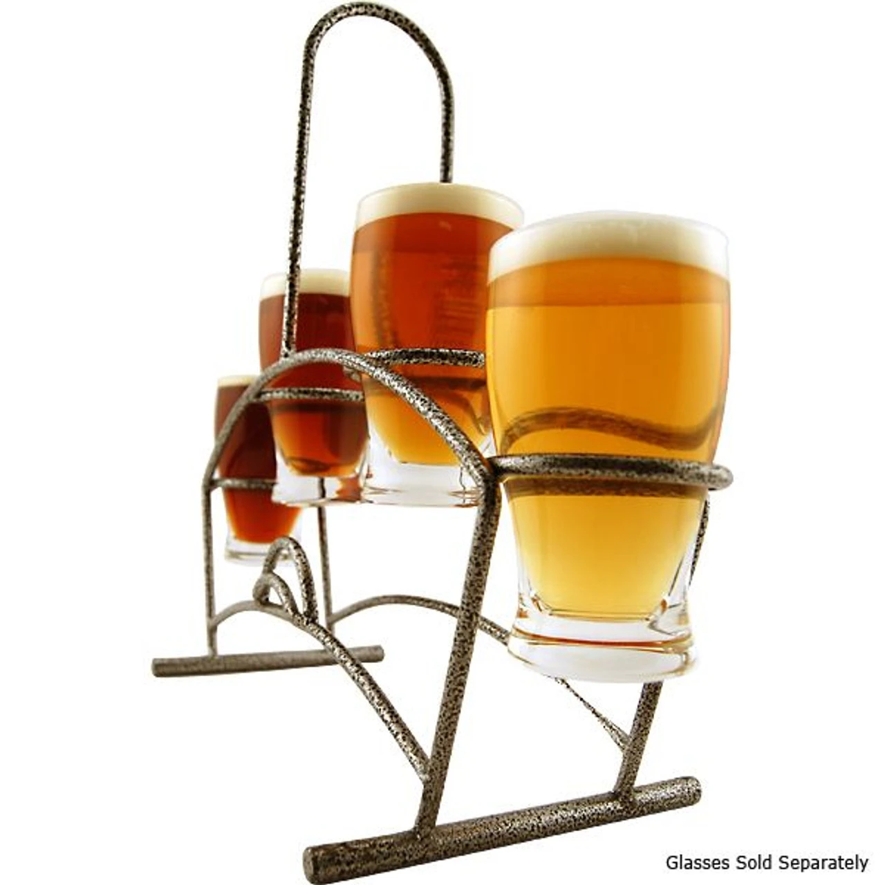 Designed to accommodate four standard five-ounce tasting glasses, this sturdy flight carrier is made from durable metal.