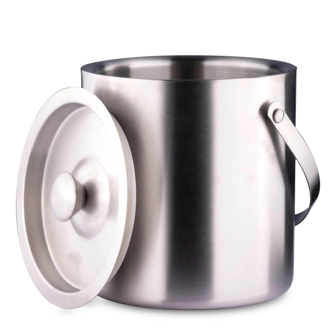 If you need a quality metal ice bucket for your home bar, then look no further. This ice bucket is made from 18/8 stainless steel and holds a large amount of ice that will stay colder for longer because of the double walled construction. The cold stays inside while keeping condensation from forming on the outside.