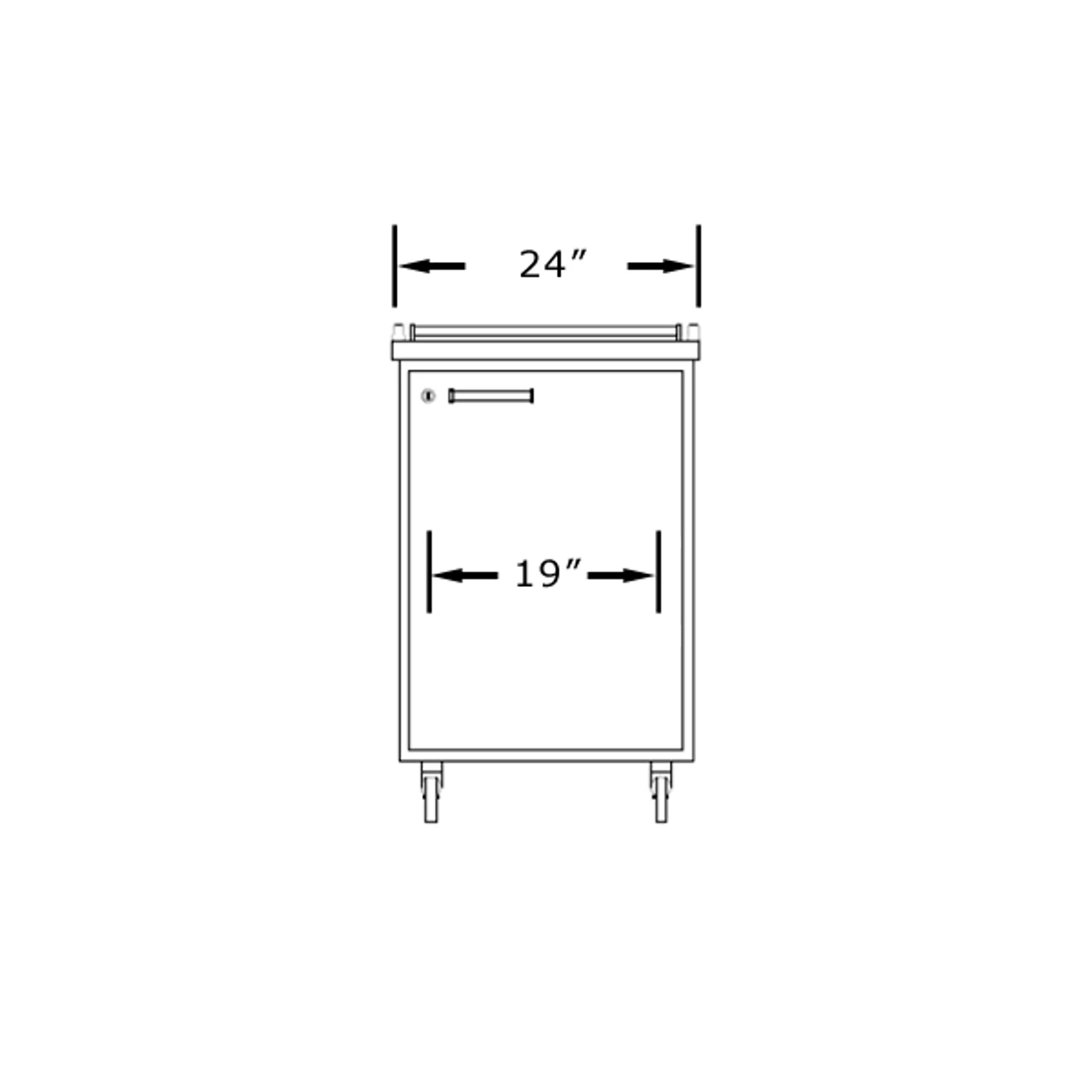 - External dimensions: 24” long x 24” wide x 49-1/8” high (with casters installed)