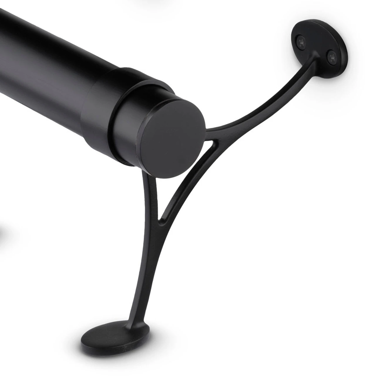 This bracket sits approximately 6″ off the floor (measured from the floor to the center of the area for the tubing) and 6″-7″ away from the facing of the bar. With two contact points, this double-footed bar rail bracket combines a sturdy build and a classy design. For proper support, bar brackets should be placed at each end of the tubing, plus one for every 4-foot increment.