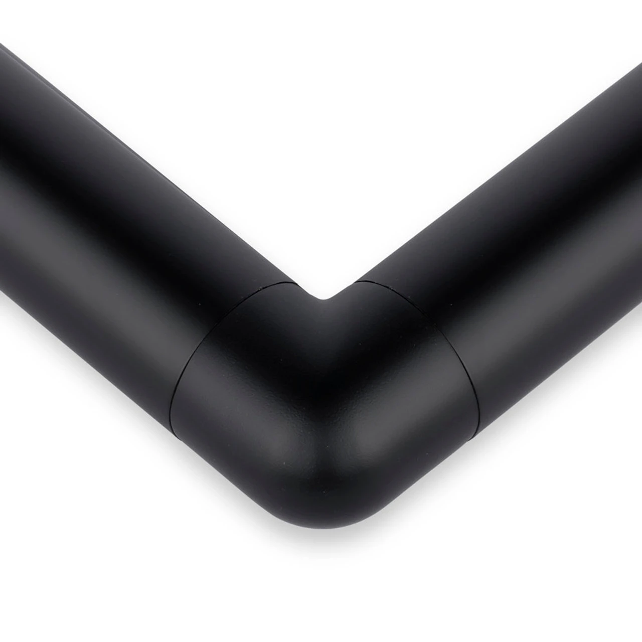 The durable black finish of this elbow fitting will exactly match your . Just slide a rail on either end, secure the tubing with matching , and enjoy the comfortable addition that seems custom-fit to match any L-shaped turns in your bar.