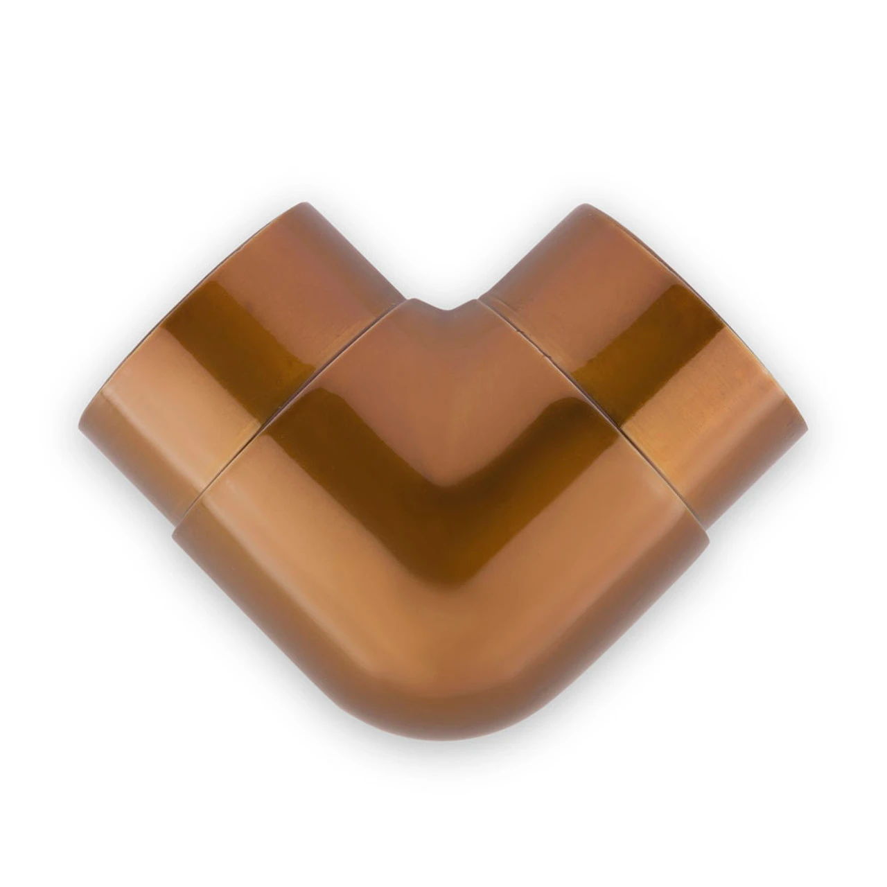 The durable copper finish of this elbow fitting will exactly match your . Just slide a rail on either end, secure the tubing with matching , and enjoy the comfortable addition that seems custom-fit to match any L-shaped turns in your bar.