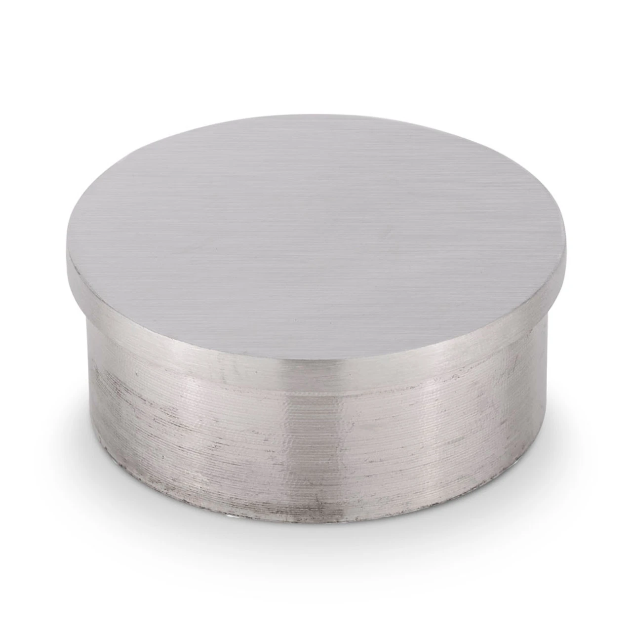 The stainless steel finish of this flush flat end cap will precisely match your . They’re very easy to install, as the metal end cap slides directly into the tubing. Read our guide on Made to fit into tight spaces, these railing end caps will add a minuscule amount of length to the end of the bar rail.
