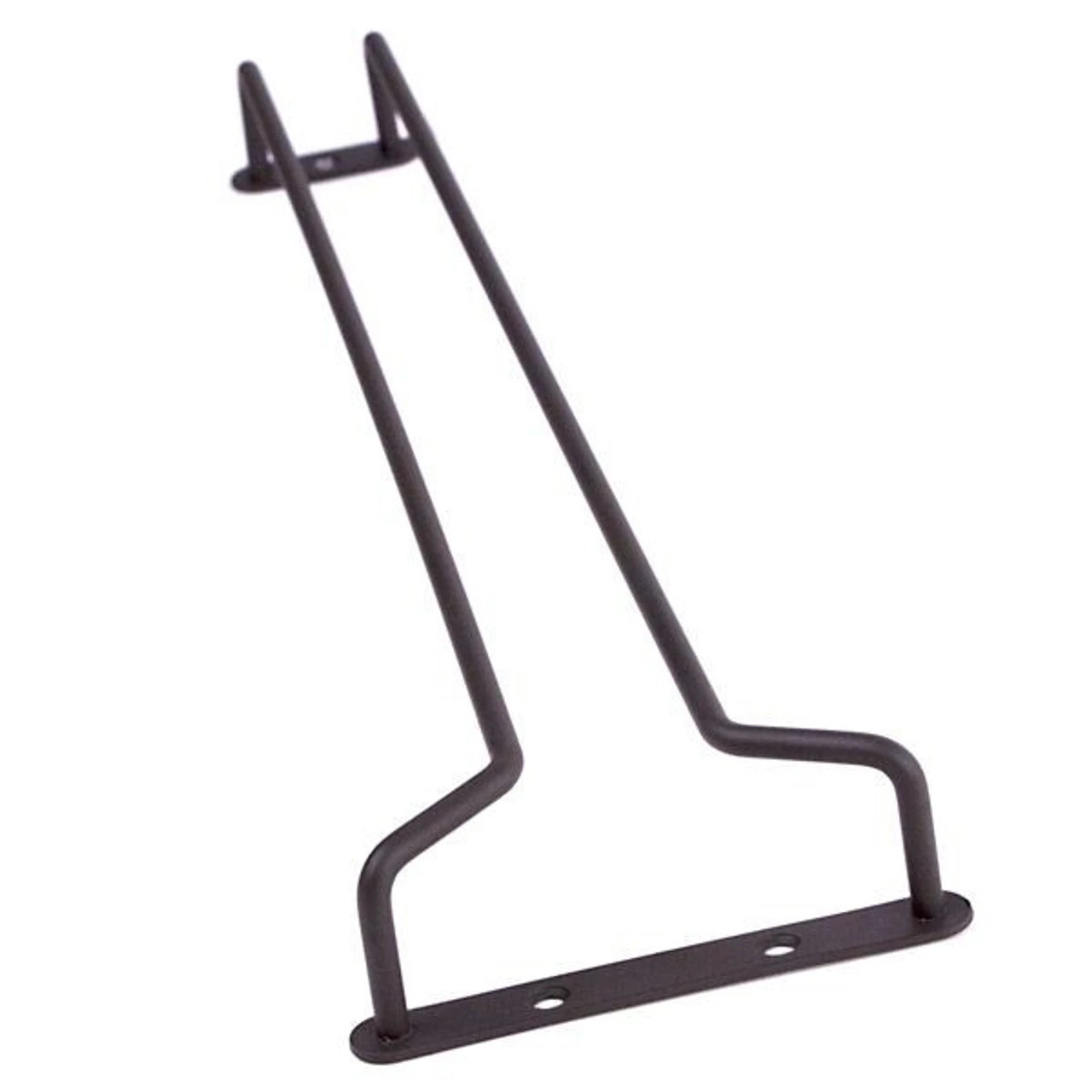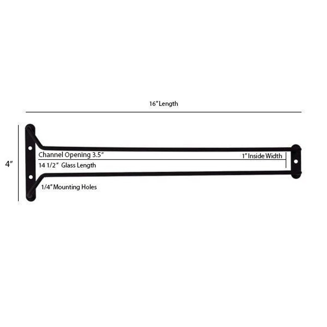 The 16-inch-long Glass Hanger Rack is made of solid, durable chrome with a handsome matte black finish that complements a variety of decors. Use the three included mounting screws, to install it overhead or under cabinetry.