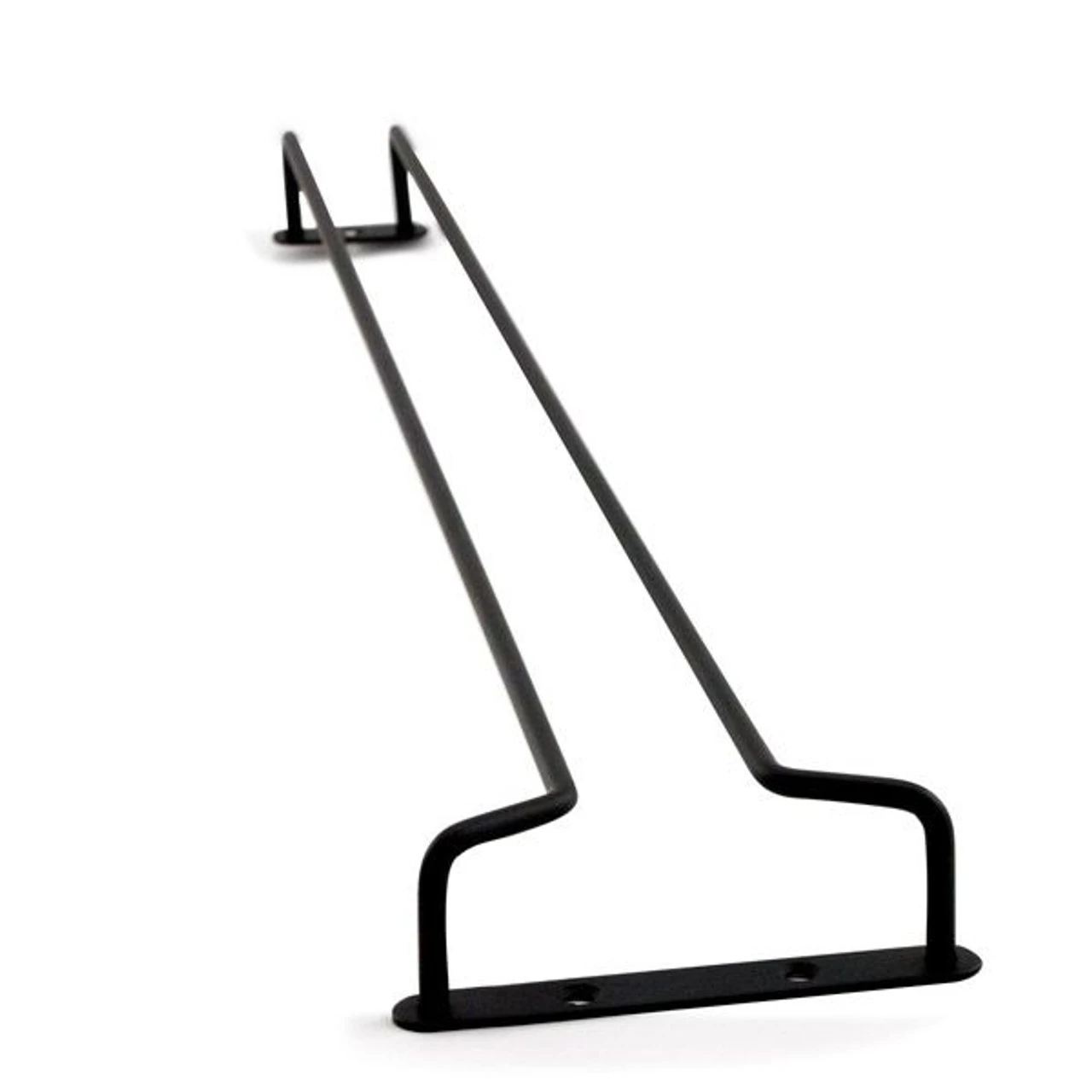 The 24-inch-long Glass Hanger Rack is made of solid, durable chrome with a handsome matte black finish that complements a variety of decors. Use the three included mounting screws, to install it overhead or under cabinetry.