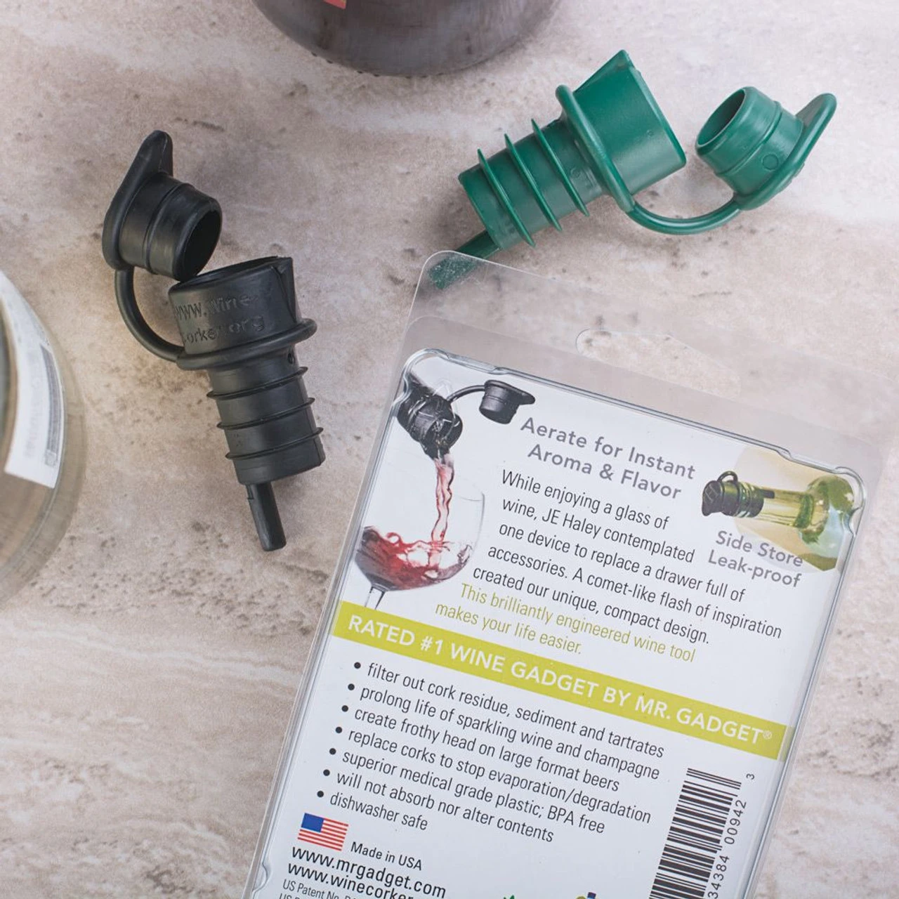 Enhance your tasting experience with a set of Haley’s Corker 5-in-1 Wine Aerator & Stoppers.