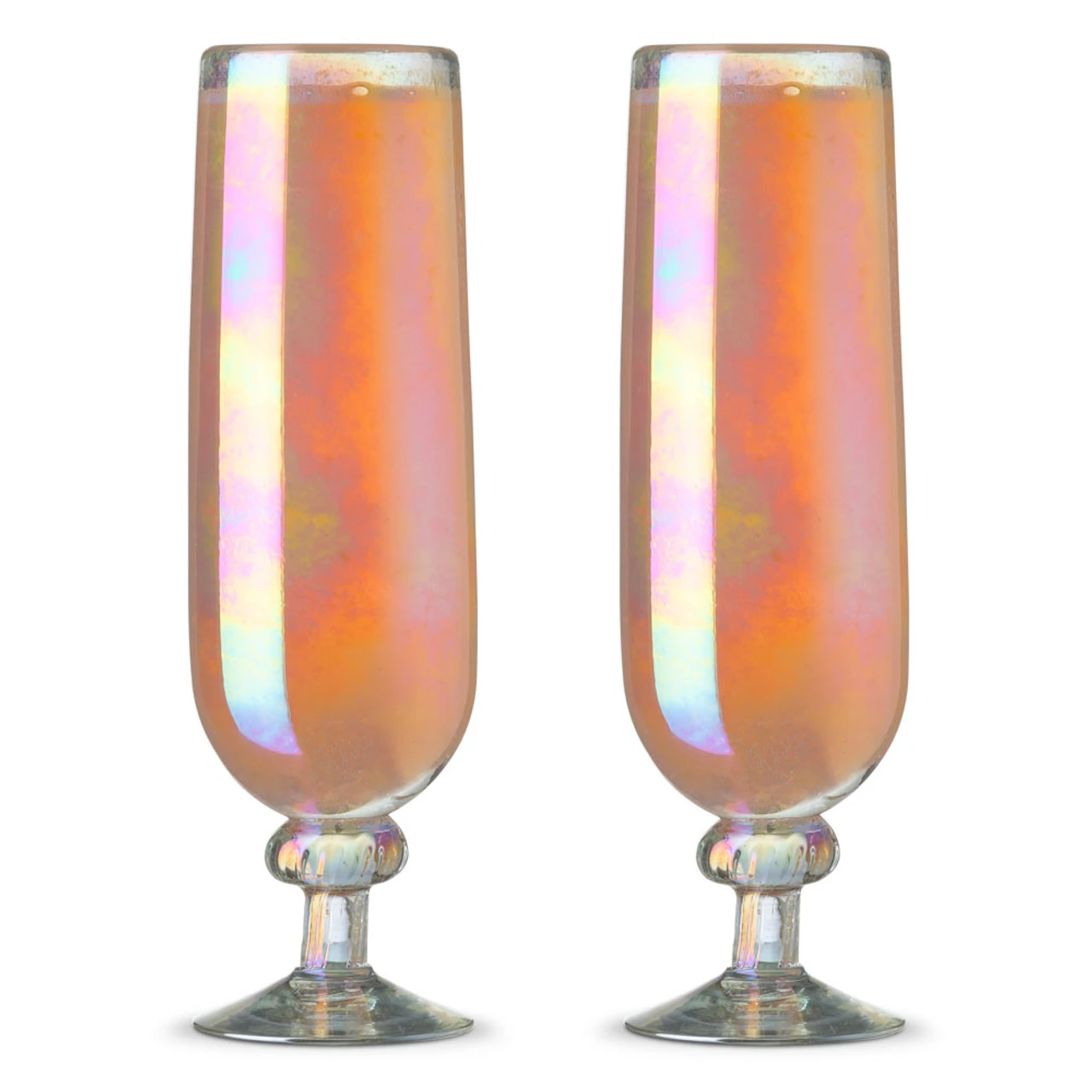 Featuring a pearl-like translucence and luster, this visually stunning pair of handmade champagne flutes are ideal for sipping a little bit of the bubbly.