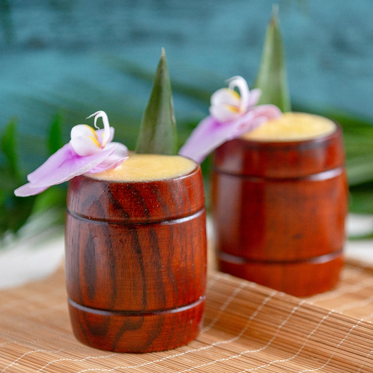 Crafted from solid wood to resemble a weathered barrel, these tumblers are perfect for a Moscow Mule, Dark ‘n’ Stormy, or any number of cocktails you might sip at a backyard party, barbecue, or tiki-themed event. They even work with beer or any other cold beverage you might be serving. Handmade Barrel Mugs hold 12 ounces of your favorite tropical concoction or beverage.