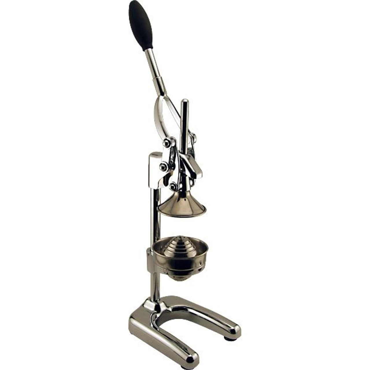 The extra wide cone and funnel fits even the biggest grapefruits. Pulp, seeds, and pith are contained in the strainer core, allowing only strained juice to pass through. Its patented lever mechanism is easy to operate, with a sure-grip handle and sturdy base for added stability and leverage. Stainless steel construction stands up to heavy use and cleans up in minutes.