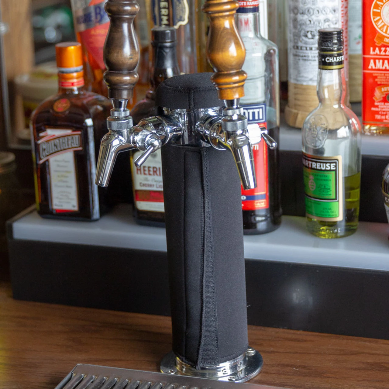Combining a sleek black look with functionality, it is made from thick, stretchable, neoprene fabric and KegWorks-branded. Its velcro front allows for a snug fit on your draft tower for maximum cooling insulation.