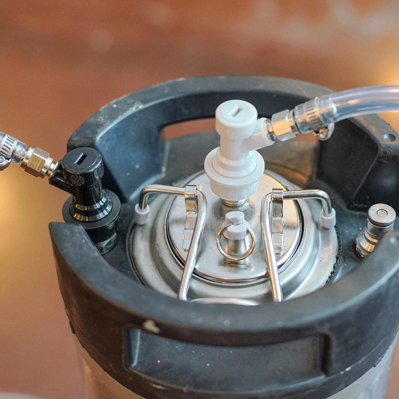 For nitro coffee, simply attach this lid to your Corny keg, connect the gas line to the post on the lid, and slowly raise the pressure in 5 PSI increments until reaching a 35-45 PSI serving pressure. Your nitro brew coffee will be coming out of your kegerator looking like a Guinness after just around 20 minutes of raising the pressure until it reaches its proper PSI. This keg lid is the easiest way to create a cascading effect, and foamy head at the top of your glass of cold brew coffee.