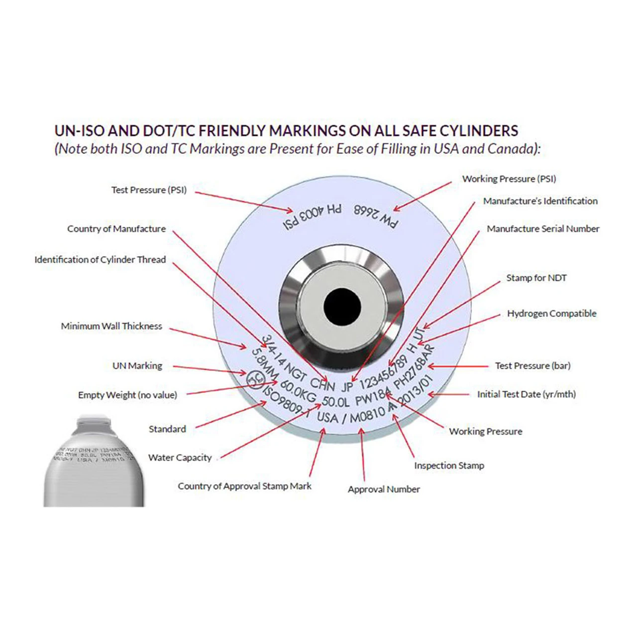 - Cylinders are stamped with required U.S. Department of Transportation (DOT) and Transport Canada (TC) Markings