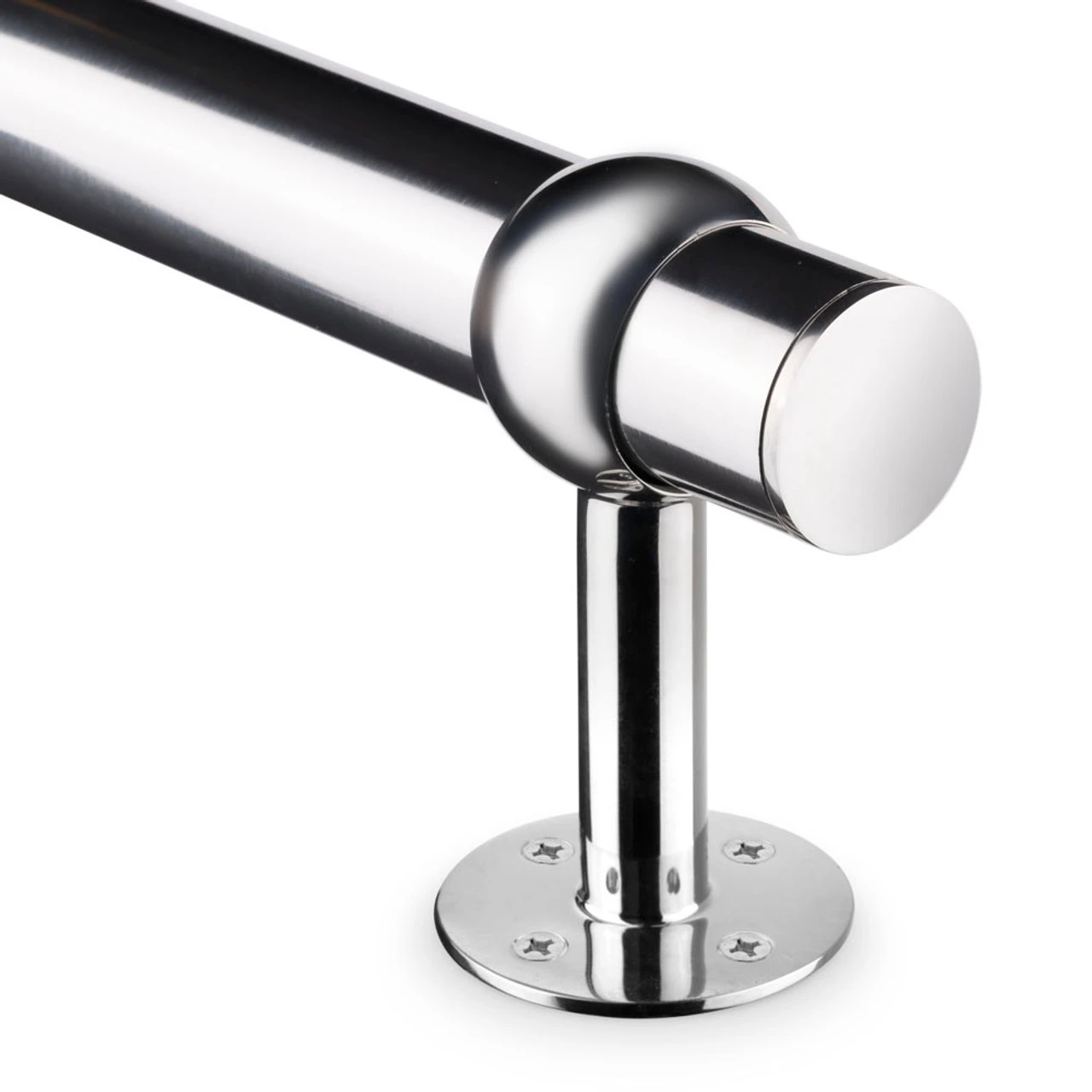 - Bracket foot mounts to floor (or wall/bar face for hand rail)