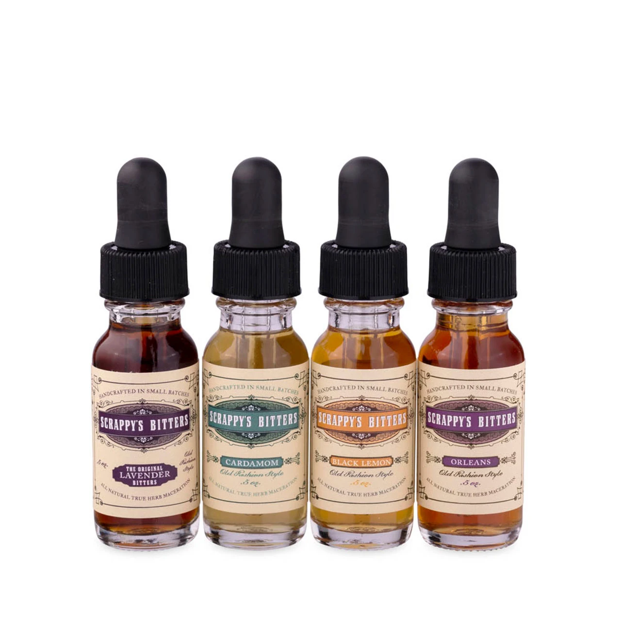 - Set contains four innovative Scrappy’s flavors that have become new classics in the contemporary cocktail landscape