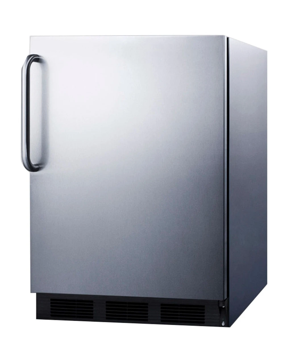This all refrigerator includes a wrapped stainless steel door and a seamless stainless steel cabinet at an affordable price. It has Summit’s unique “hidden” evaporator to accommodate large trays, and a sturdy stainless steel handle. Solid construction.
