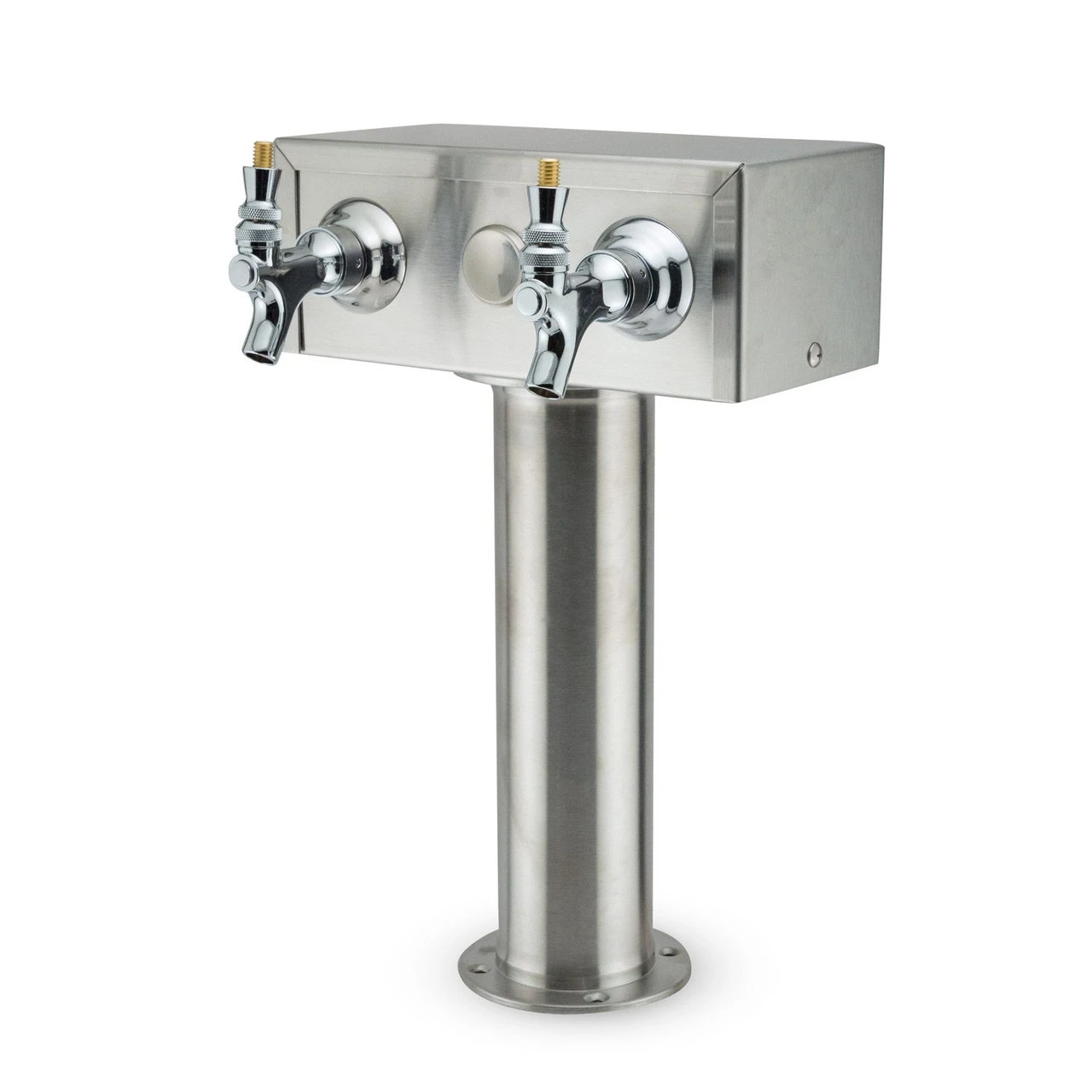 Step up to a T-tower design with this handsome draft beer tower that allows you to serve two beers at once in your home or commercial bar.