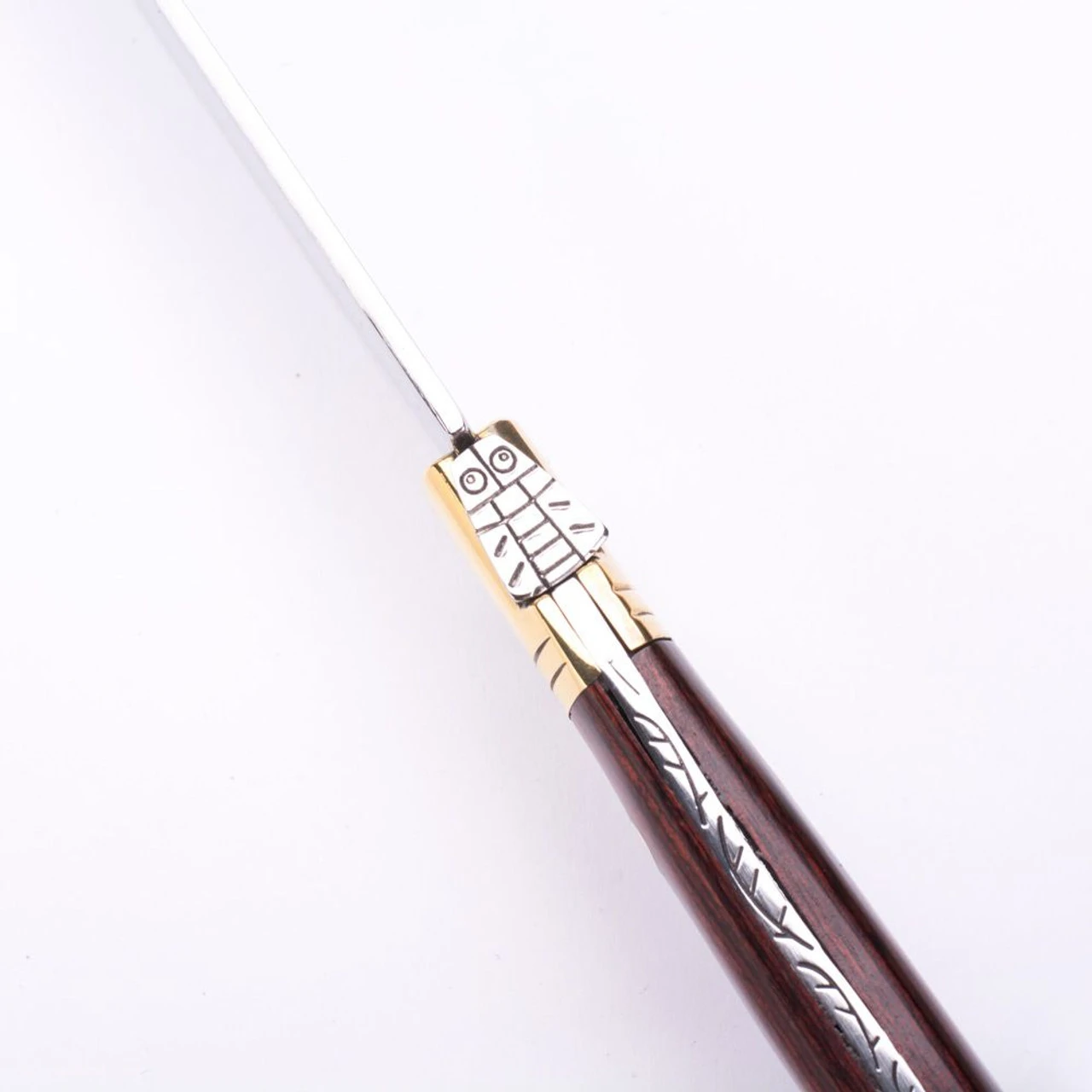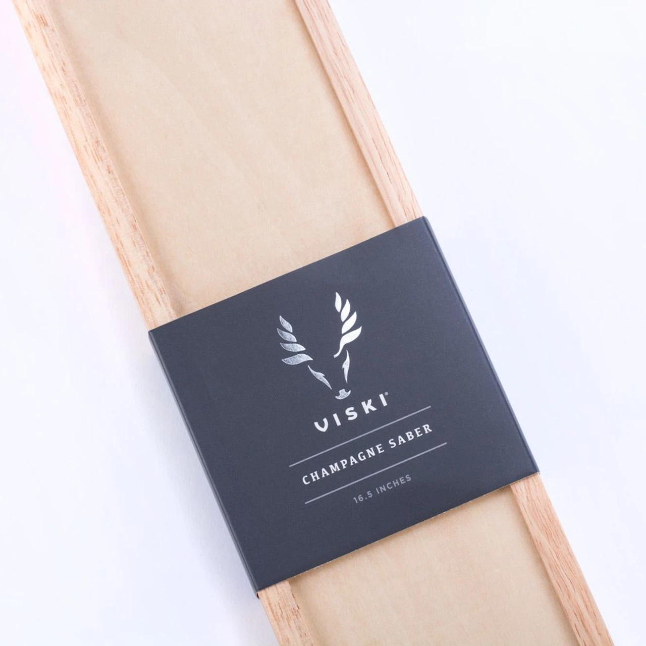 The handsome wooden handle and curved stainless steel blade look dignified, but this saber was designed without sharp edges, making for a safer overall experience. That said, we encourage exercising caution when using this product or any tool to saber a bottle.
