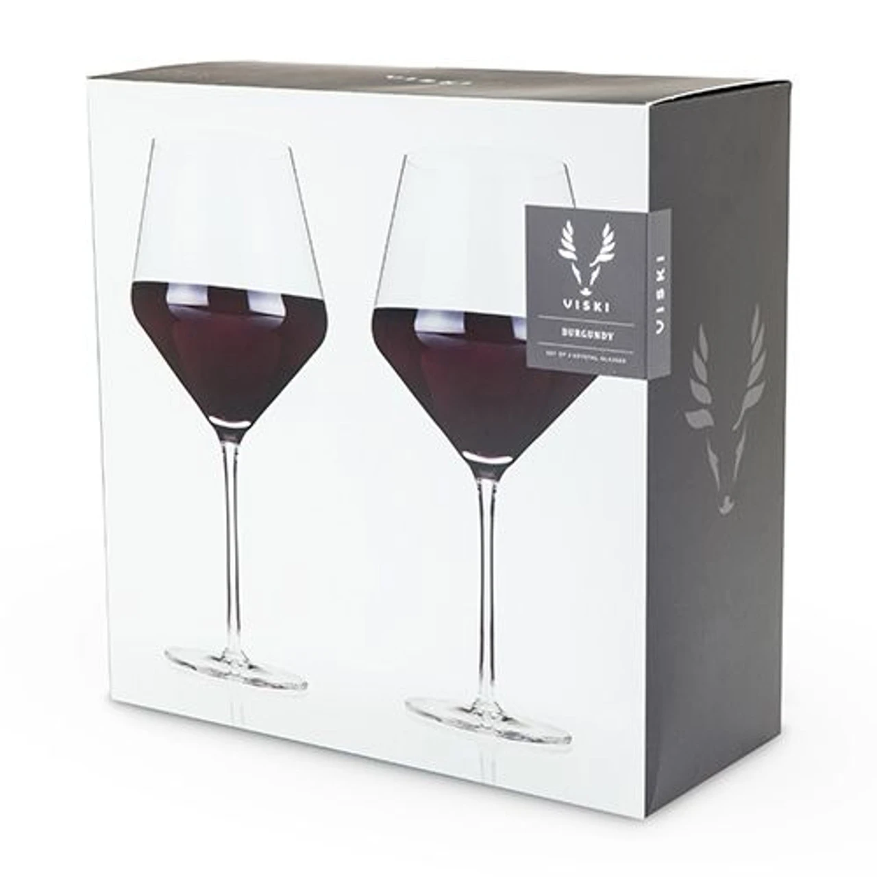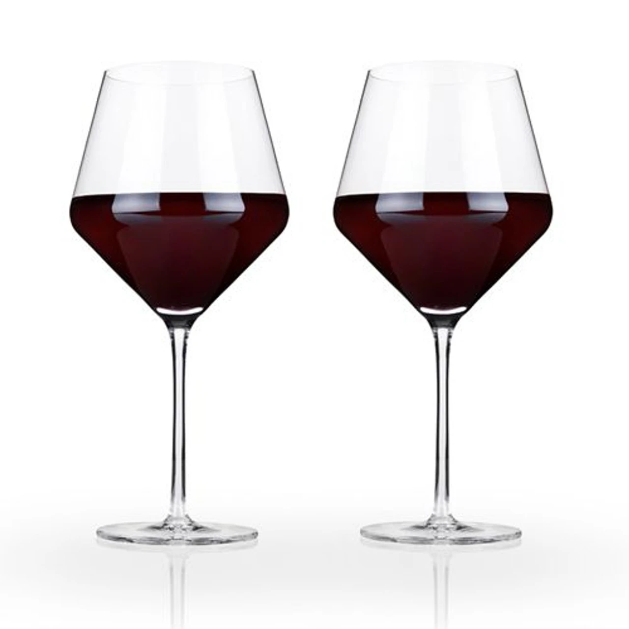 These particular burgundy glasses are made by Viski from premium, lead-free crystal and feature an angular, modern shape with precise lines bring a superior imbibing experience.