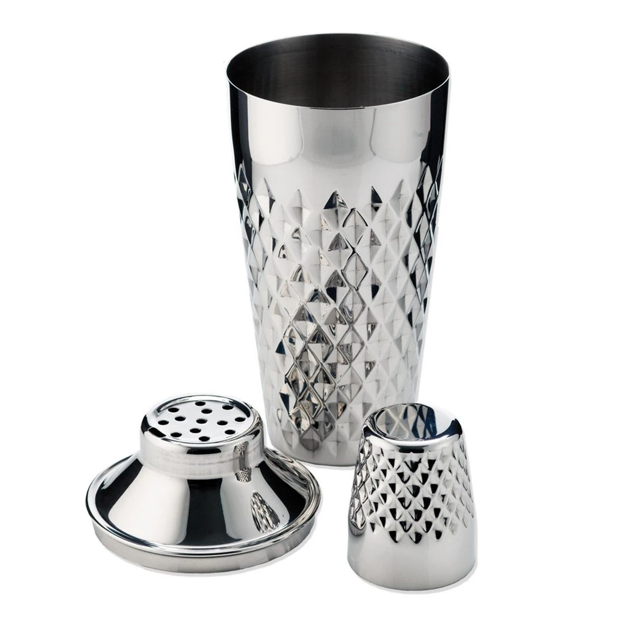 This stainless steel drink shaker is all style AND all substance. The diamond-shaped facets gracing the body give incredible grip as well as a unique look and the high-quality built-in strainer let’s you pour your favorite cocktails without having to use any extra instruments at your bar.